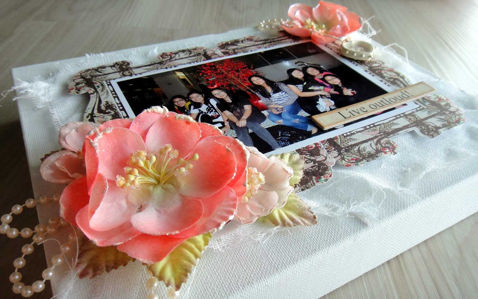 I used mainly Prima products for this layout, and added some muslin and corrugated cardboard for a textured look.